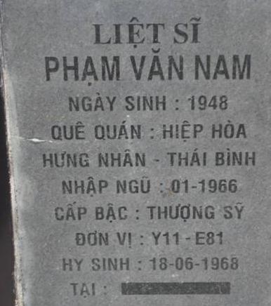 Tiêu đề : Tìm thân nhân liệt sĩ Phạm Văn Nam