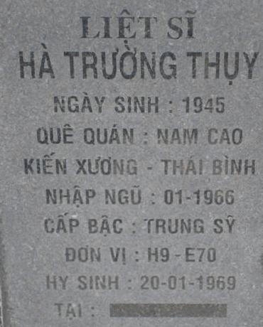 Tiêu đề : Tìm thân nhân liệt sĩ Hà Trường Thụy