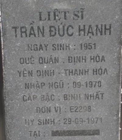 Tiêu đề : Tìm thân nhân liệt sĩ Trần Đức Hạnh