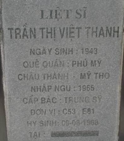 Tiêu đề : Tìm thân nhân liệt sĩ Trần Thị Việt Thanh