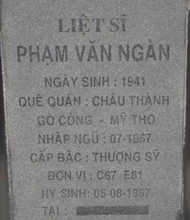 Ls nhập ngũ: 07/1967. Nguyên quán trên bia: Châu Thành, Gò Công, Mỹ Tho. Thông tin chi tiết xin liên hệ bác Nguyễn Sỹ Hồ hoặc ban quản trang NTLS tỉnh Bình Phước. Địa chỉ: QL14 - xã Đồng Tiến, huyện Đồng Phú, tỉnh Bình Phước, điện thoại: 0651.3885210.