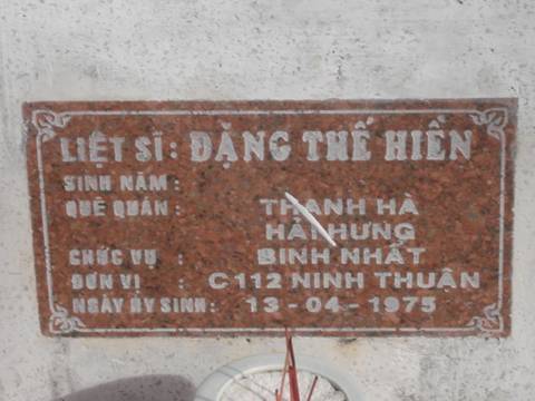 Nơi quy tập: Nghĩa trang liệt sĩ tỉnh Bình Thuận