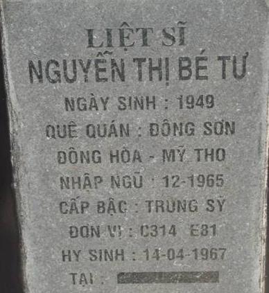 Tiêu đề : Tìm thân nhân liệt sĩ Nguyễn Thị Bé Tư