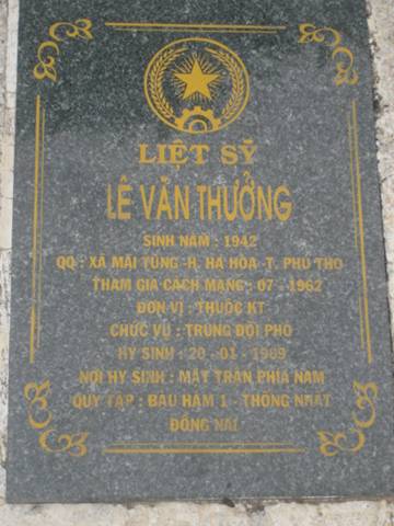 LS tham gia cách mạng tháng/1962. Nơi quy tập trên bia mộ: Bàu Hầm 1, Thống Nhất, Đồng Nai. Thông tin chi tiết xin liên hệ bác Nguyễn Sỹ Hồ hoặc ban quản trang NTLS tỉnh Bà Rịa - Vũng Tàu. Địa chỉ: Phường Phước Trung, thị xã Bà Rịa, tỉnh Bà Rịa - Vũng Tàu, điện thoại: 064.3827932.