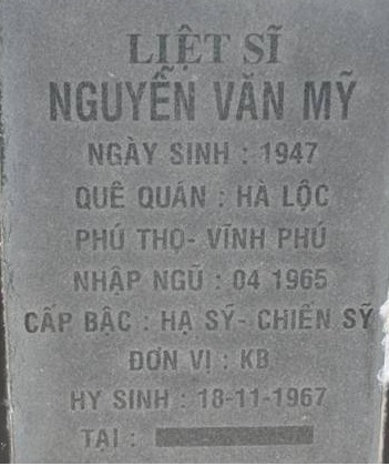 Tiêu đề : Tìm thân nhân liệt sĩ Nguyễn Văn Mỹ