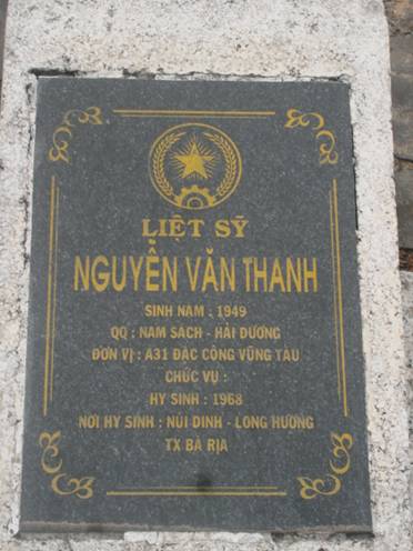 Nơi hi sinh : Núi Dinh - Long Hương - TX Bà Rịa