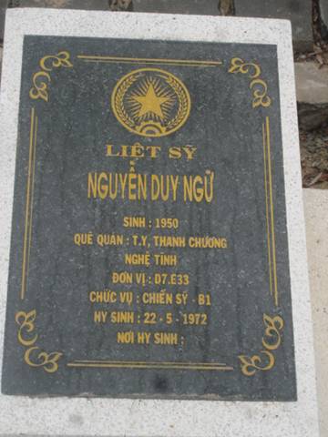 Tiêu đề : Nhắn tìm thân nhân liệt sỹ Nguyễn Duy Ngữ