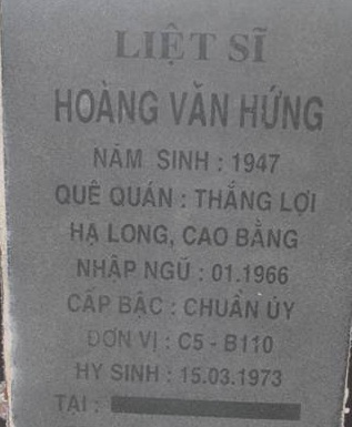 Ls nhập ngũ: 01/1966. Nguyên quán trên bia: Thắng Lợi, Hạ Long, Cao Bằng. Thông tin chi tiết xin liên hệ bác Nguyễn Sỹ Hồ hoặc ban quản trang NTLS tỉnh Bình Phước. Địa chỉ: QL14 - xã Đồng Tiến, huyện Đồng Phú, tỉnh Bình Phước, điện thoại: 0651.3885210.