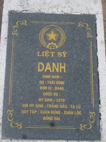 Liệt sỹ Danh hi sinh tại Trảng Dầu, Tà Lú.Địa điểm quy tập ban đầu tại Xuân Hưng, Xuân Lộc, Đồng Nai.Thông tin chi tiết về liệt sỹ Danh xin liên hệ bác Nguyễn Sỹ Hồ hoặc ban quản trang NTLS tỉnh Bà Rịa - Vũng Tàu. Địa chỉ: Phường Phước Trung, thị xã Bà Rịa, tỉnh Bà Rịa - Vũng Tàu, điện thoại: 064.3827932