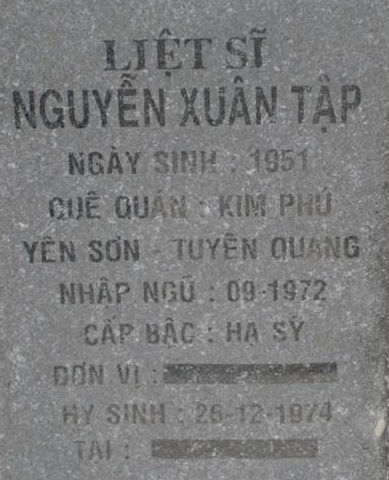Tiêu đề : Tìm thân nhân liệt sĩ Nguyễn Xuân Tập