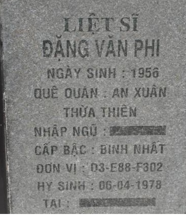 Tiêu đề : Tìm thân nhân liệt sĩ Đặng Văn Phi