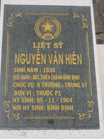 - Nguyên quán liệt sĩ trên bia mộ: Bắc Thiên Chánh, Bình Định.
