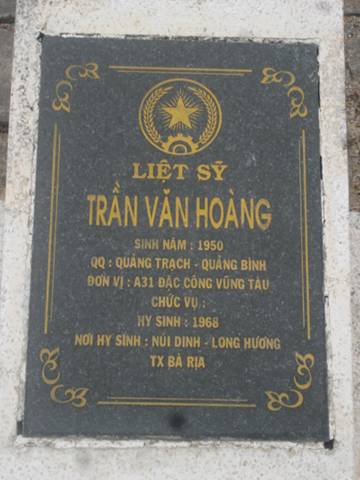 Nơi hi sinh : Núi Dinh, Long Hương, TX Bà Rịa