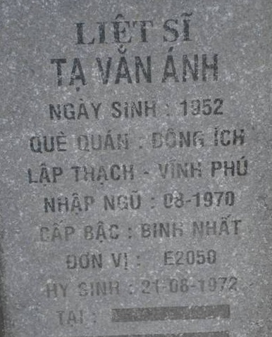 Tiêu đề : Tìm thân nhân liệt sĩ Tạ Văn Ánh