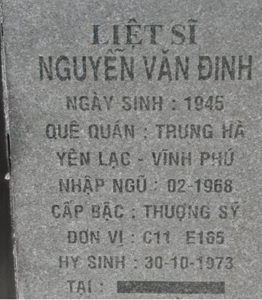 Tiêu đề : Tìm thân nhân liệt sĩ Nguyễn Văn Đinh