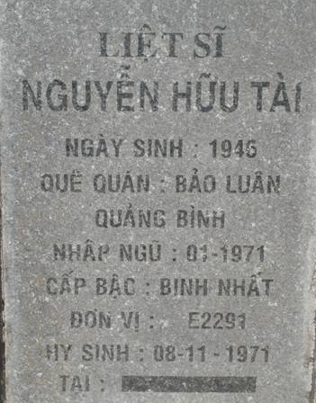 Tiêu đề : Tìm thân nhân liệt sĩ Nguyễn Hữu Tài