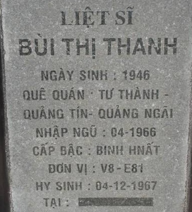 Tiêu đề : Tìm thân nhân liệt sĩ Bùi Thị Thanh