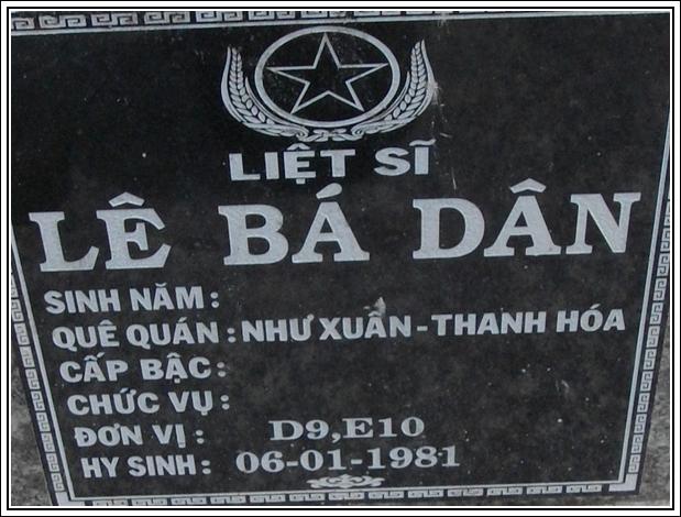 Nhắn tìm thân nhân liệt sỹ  Lê Bá Dân