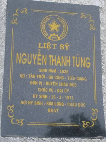 Nơi hi sinh : Kim Long-Châu Đức- Bà Rịa Vũng Tàu