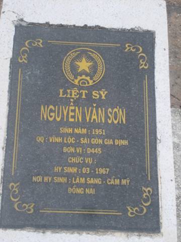 Nơi hi sinh : Lâm Sang, Cẩm Mỹ, Đồng Nai